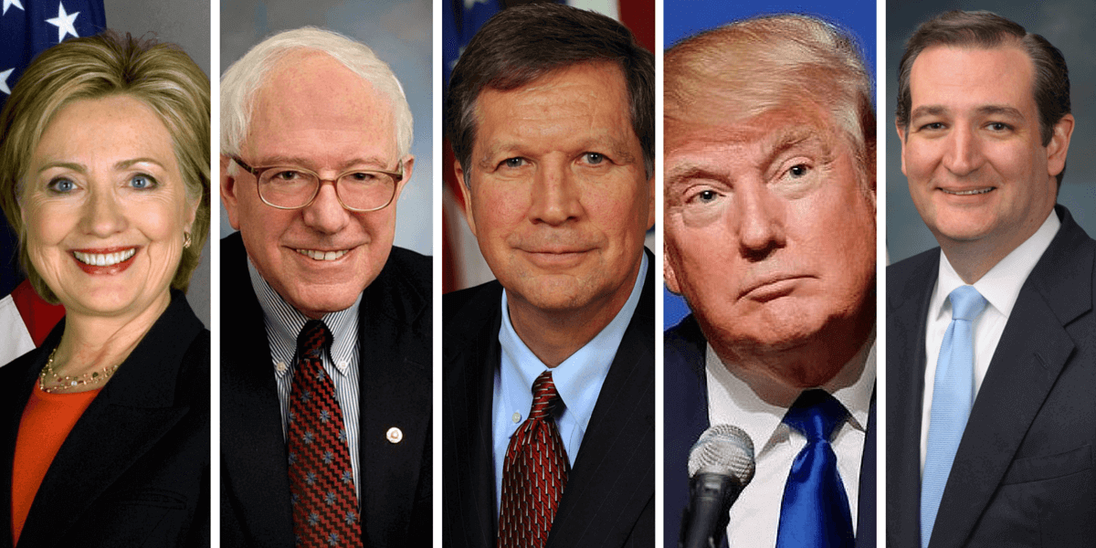 At the time, Hillary Clinton, Bernie Sanders, Donald Trump, Ted Cruz, John Kasich, Marco Rubio (dropped: March 16), Ben Carson (dropped: March 2), and Jeb Bush (dropped: February 20) were the presidential candidates in the race.